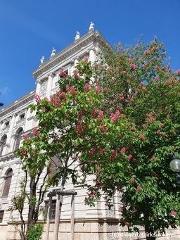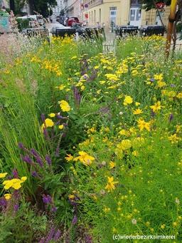 Bild: Blühende Kastanie vor dem Kunsthistorischen Museum Wien (li.) Blühstreifen in Wien (re.)