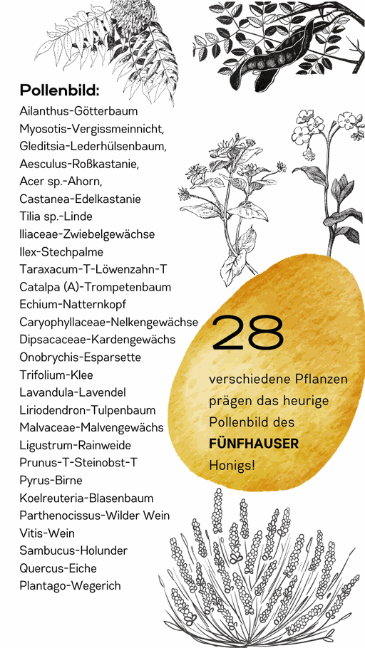 Tipp: Jedes Jahr schicken wir Proben unserer Honige ins Labor, um die genaue Zusammensetzung aus Nektar- und Pollenquellen der einzelnen Bezirkshonige untersuchen zu lassen. Du findest die Ergebnisse im Shop direkt unter dem jeweiligen Bezirkshonig oder auch abgespeichert als Highlight auf unserem Instagram-Profil.